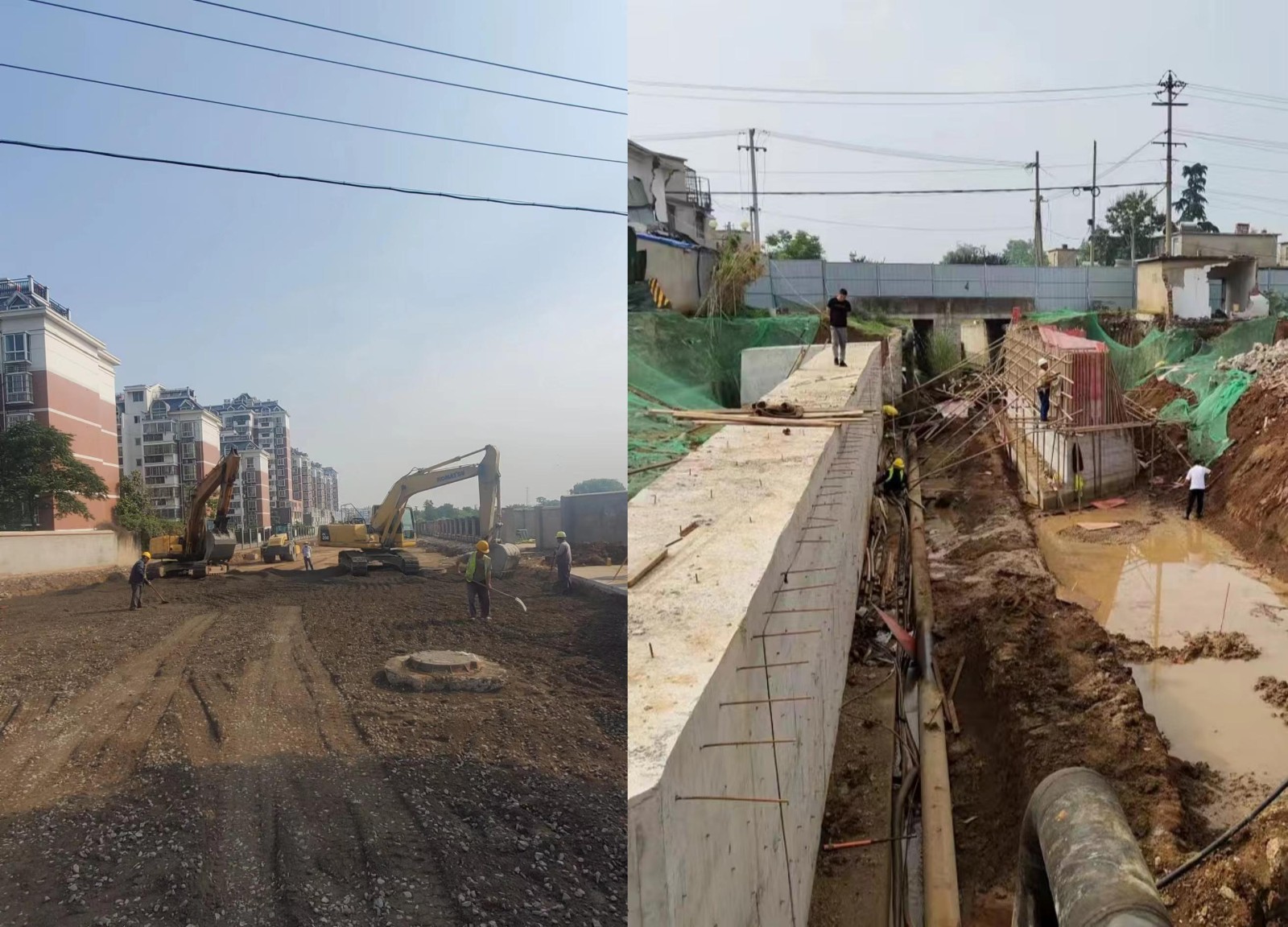 工程自開工至端午節(jié)前,已完成(樁號(hào)K0+365~K0+745段)土方工程、雨污管網(wǎng)工程、灰土工程及二層水穩(wěn)工程;橋涵工程(樁號(hào)K0+893.878)下部結(jié)構(gòu)基礎(chǔ)及橋身澆筑。