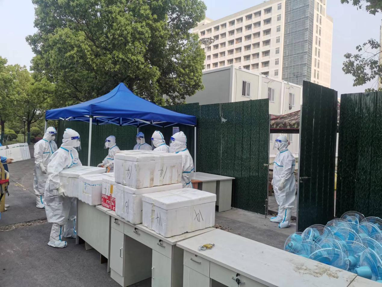 4月15日晚,接上級單位指令,公司連夜迅速組建一支14人的應急突擊隊伍,進駐謝家集區(qū)謝李大井醫(yī)學觀察隔離方艙,支援后勤保障服務工作。應急隊成員經(jīng)醫(yī)護人員專業(yè)防護知識培訓后,迅速熟悉現(xiàn)場并明確分工,嚴格按照方艙醫(yī)院的標準和要求開展保障服務工作。