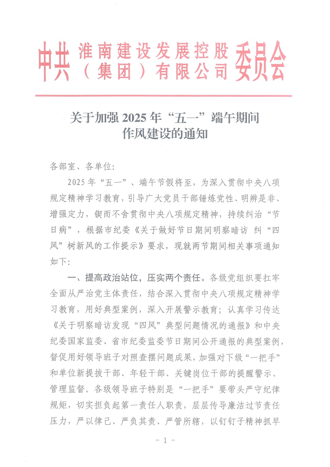 關(guān)于加強2025年“五一”端午期間 作風建設(shè)的通知